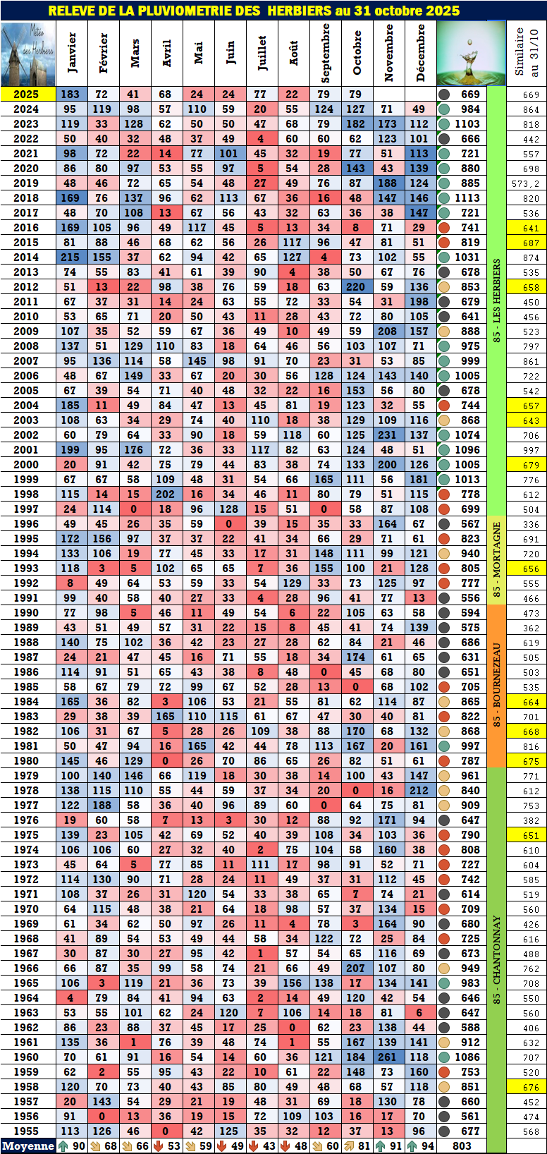 Cumul de 8mm à 7h. Novembre 74mm. 743mm depuis le 1er janvier. 3mm ce matin puis brumeux suivi d'éclaircies. Demain pluie suivi d'averses. Variable à voilé et pluvieux vendredi suivi d'un samedi variable et d'éclaircies dimanche. De belles éclaircies à variable la semaine prochaine. A confirmer! meteoblue