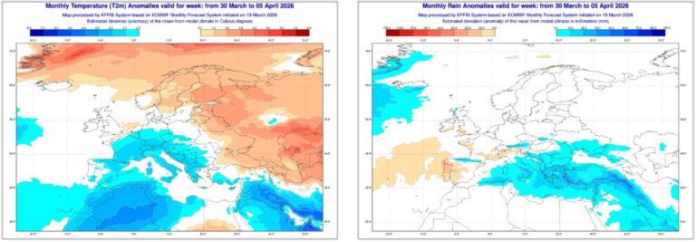 Cumul de 45mm à 6h au 21/03. 210mm au 28/2 et 140mm 31/1. Beau ce week-end avec une légère chute du mercure. Plus frais et ensoleillé suivi d'éclaircies la semaine prochaine avec l'arrivée possible des gelées. Ciel d'éclaircies accompagné de gelées le week-end prochain. Retour à des températures printanières au 1er avril. A confirmer! Retrouvez les diagrammes dans tendances saisonnières meteoblue